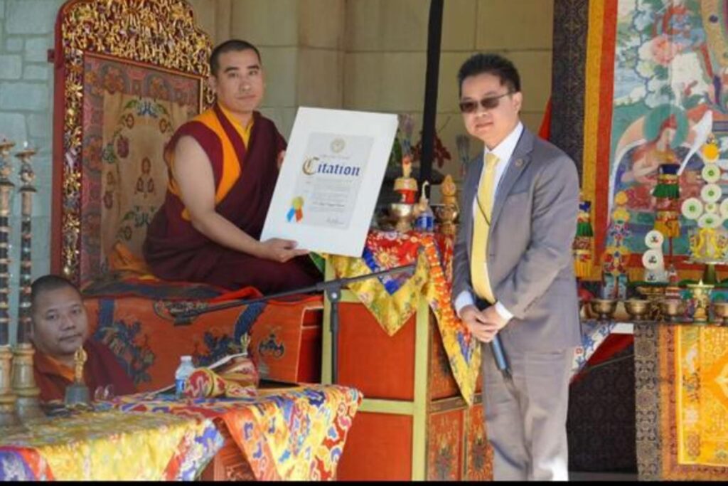 Award of Citation to H.E. Gegye Yongyal Rinpoche by President Bruce Blakeman of Nassau County, Long Island, USA