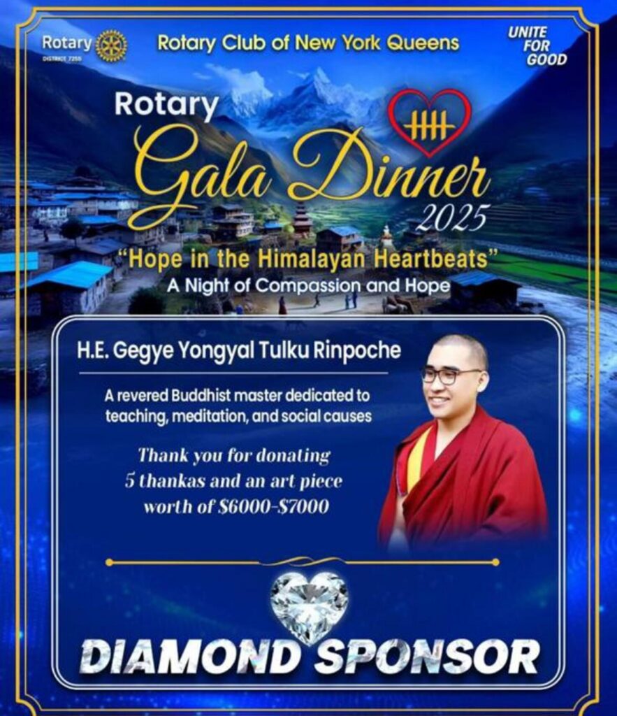 In December 2025, when the Rotary Club of Queens, New York — a chapter of one of the world’s most respected humanitarian service organizations — reached out to Rinpoche with a request for support, his response was immediate and characteristic. Without hesitation, he not only committed his own support but turned to his community, inviting and inspiring those around him to participate in this act of giving, demonstrating once again that true generosity is not solitary but communal and expansive. What Rinpoche offered was remarkable not only in its monetary value but in its cultural depth and spiritual significance.